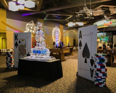 We make your evening and experience Vegas authentic by providing casino decor and decorations that make everyone feel like they’re in an actual casino on the Vegas strip. Not only do we have a huge inventory of decor, we also provide themed casino events. So if you’re looking for a “Roaring 20’s” feel – we can do that. 007 James bond or Hawaiian Luau – we can do that too. And if you want a theme that we don’t have – we’re happy to create a unique theme to your exact specifications. Our on staff artisans and furniture builders are the best in the business and can creating anything your mind can imagine.